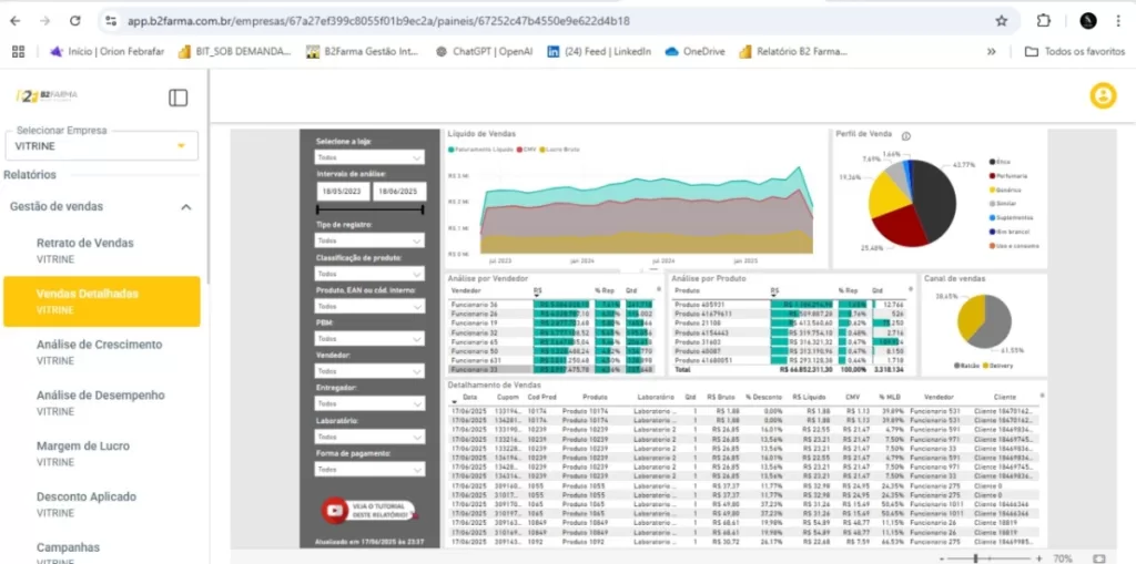 Integrado aos principais ERPs do mercado, o B2FARMA Gestão Inteligente oferece dashboards intuitivos e indicadores comerciais, operacionais e financeiros, que ajudam o gestor a enxergar exatamente onde estão os problemas e as oportunidades.